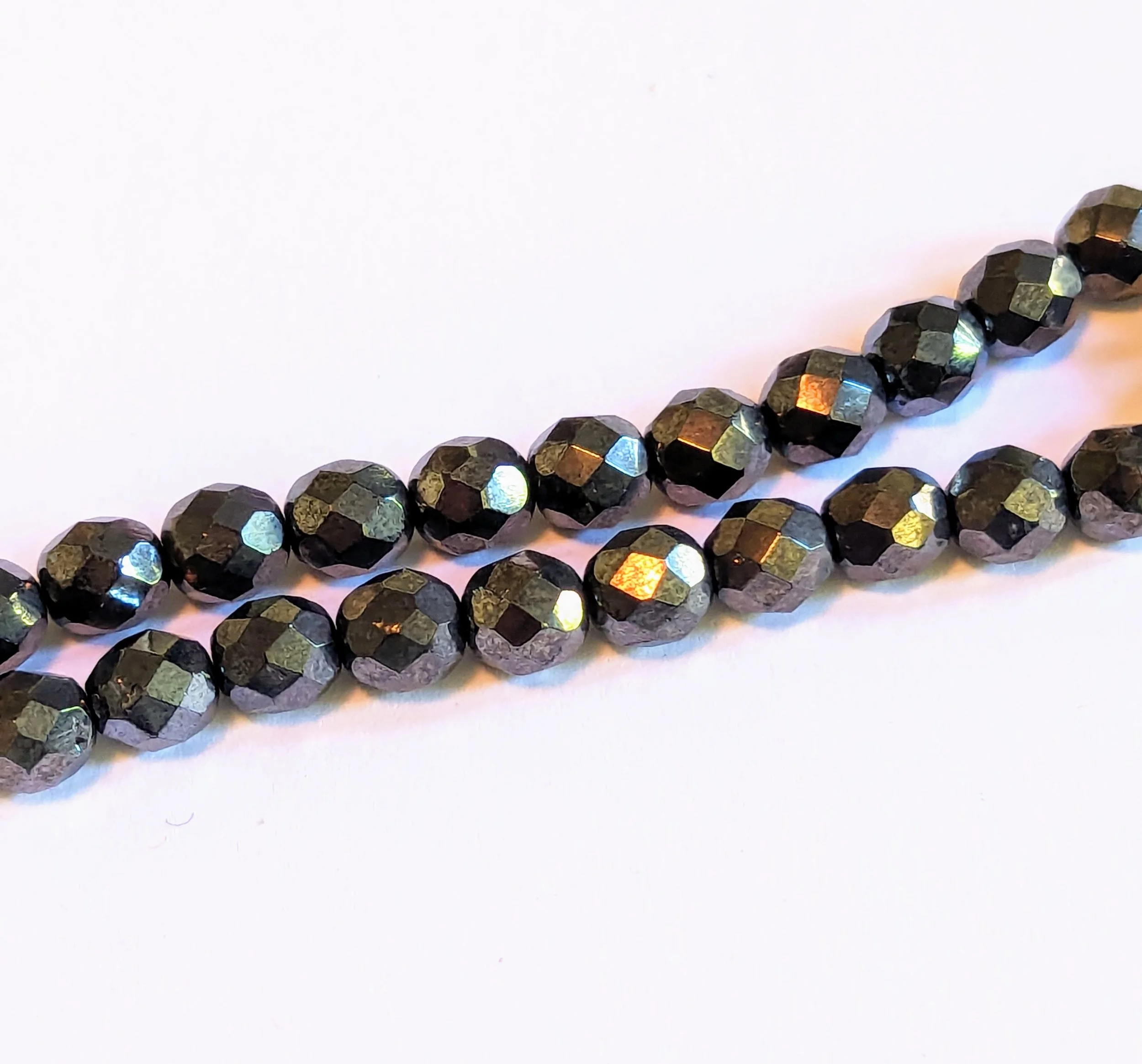 Add a touch of history and elegance to your jewelry creations with these vintage Czech faceted fire-polished glass beads in a striking dark grey hue. Crafted with precision, these beads capture and reflect light beautifully, making them a timeless choice for any project.